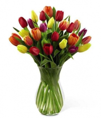 Introducing our delightful bouquet of 30 multicolored tulips, a vibran...